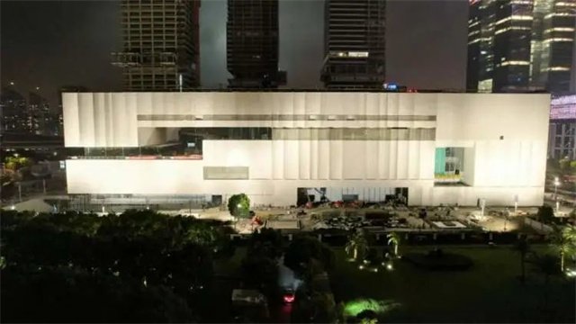据建设方上海建工集团介绍,在建上海博物馆东馆近日开始亮灯调试。目前,建筑的外立面及总体景观照明已基本完成,进入通水通电和调试阶段。室内装修、室外总体等施工也正有序推进。上博东馆预计今年年底完成竣工验收目标。