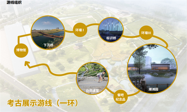 博物馆设计总占地面积约187.8亩。该项目分两期实施,其中一期工程公园部分占地约155亩,主要包括复原展示、公共考古展示、地面标识区展示、绿地景观等;二期工程是博物馆建设,基地位于遗址公园西南角,地块呈三角形,计划建成浙江省第一座考古博物馆,将于年底开工。